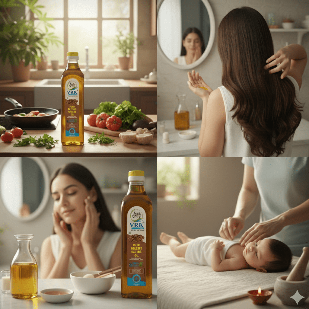 None of our products contain chemicals, preservatives, artificial colors, or flavors. Every bottle of VRK Choice oil is 100% Natural, 100% Pure & Healthy—crafted with love to bring wellness to your family.